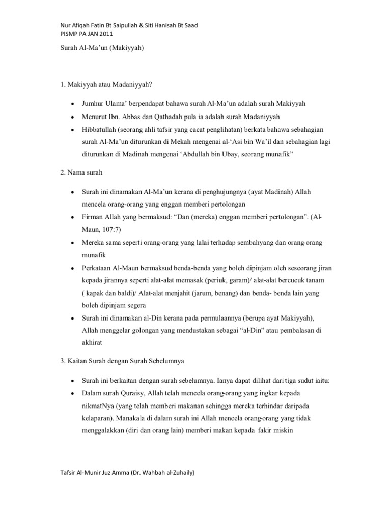 Terjemahan Ayat Suci Alquran Pengenalan Surah Al Ma Un Surah Ini Diturunkan Di Makkah Sesudah Surah At Takathur Nama Surah Ini Diambil Dari Kata Al Ma Un Yang Diambil Pada Ayat Terakhir Menurut Etimologi Al Ma Un Berarti